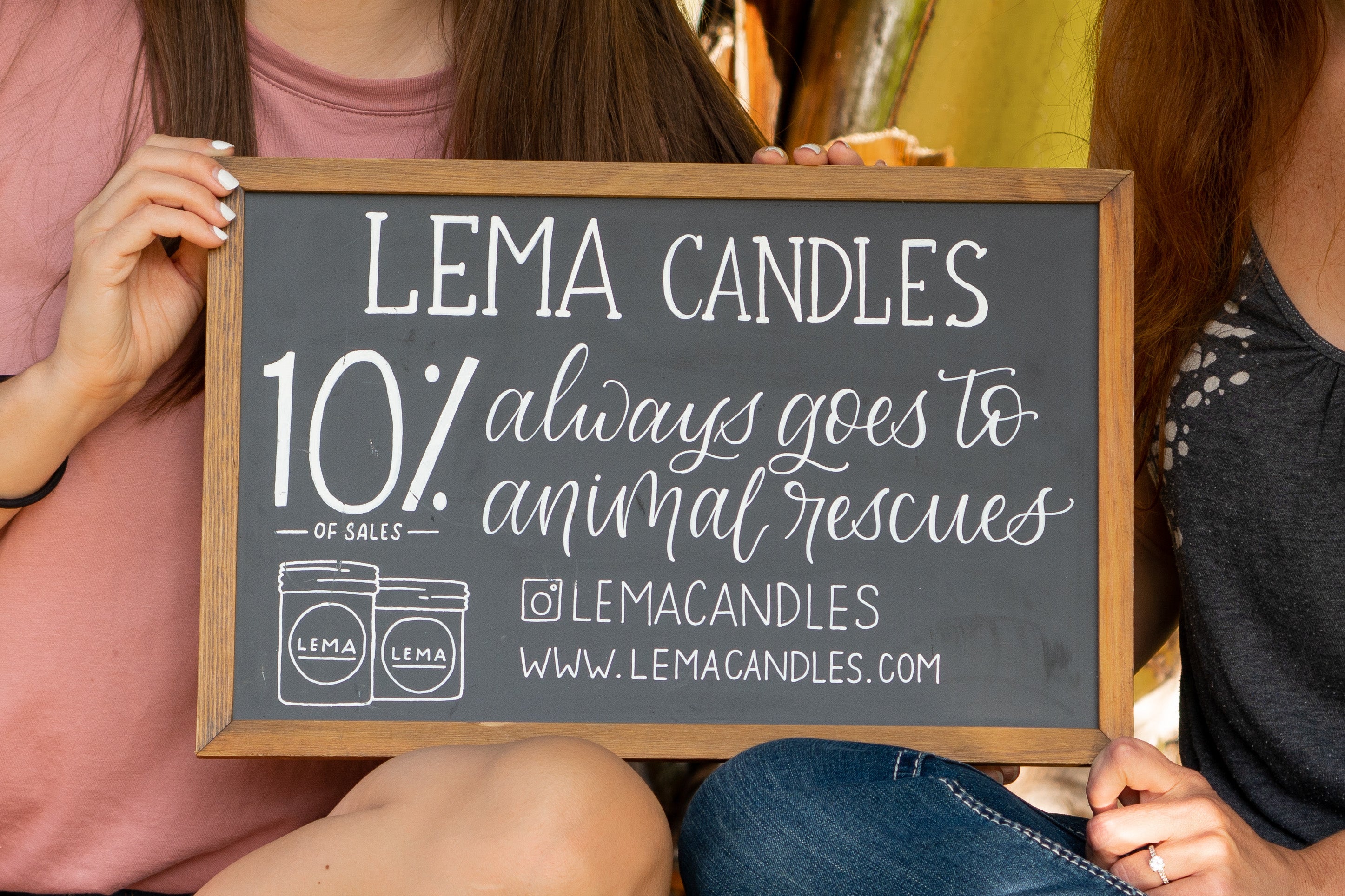 Here at LEMA, we strive to not only bring a variety of quality sustainable scents into your home but the gift of giving back. LEMA Candles are eco-friendly, made using soy wax, phthalate free fragrances, and cotton wicks. But our greatest attribute is that we donate 10% to local animal rescues. Buy a candle and be a part of our mission.